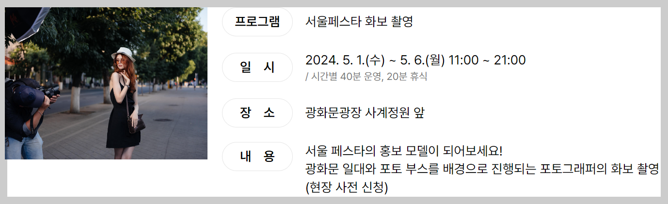 (adsbygoogle = window.adsbygoogle || []).push({}); 올해도 어김없이 서울 페스타가 찾아왔습니다. 서울의 즐거움을 만날 수 있는 대표적인 봄 축제라고 할 수 있는 '서울페스타' 서울광장, 광화문광장, 노