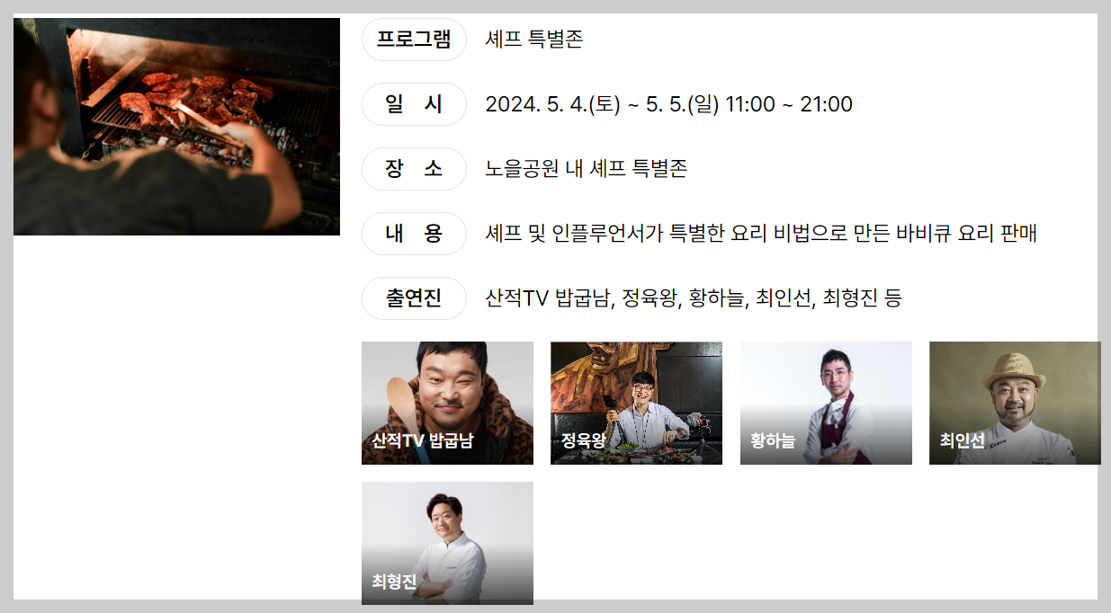 또한 특별한 프로그램으로 셰프와 인플루언서가 비법으로 만든 바비큐요리를 판매하는 '특별 셰프존'도 마련되어 있습니다.