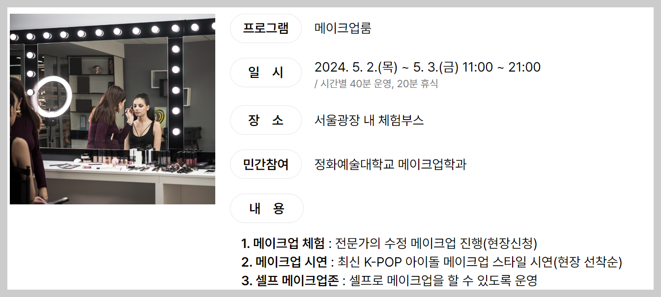 ① 당일 서울광장 종합안내소 방문 및 참여 신청