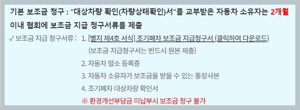 ✅ 조기폐차 보조금 지급대상 확인 신청서 다운로드 하기