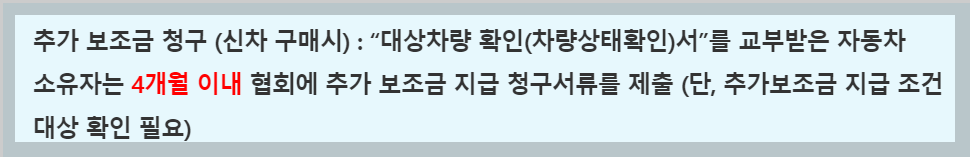 6. 신규차량(신차 또는 중고차) 구매 후 추가보조금을 신청하여 추가보조금을 수령합니다. (선택사항)