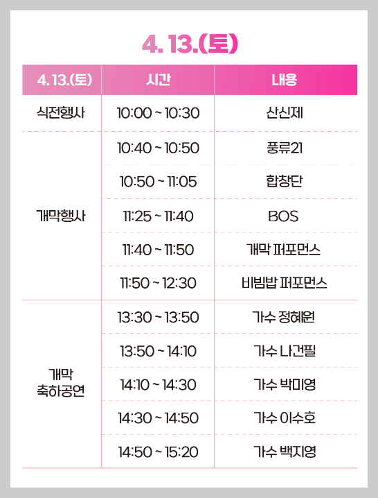 2024. 4. 13. 토요일~ 4.14. 일요일 단 이틀 동안만 진행됩니다.